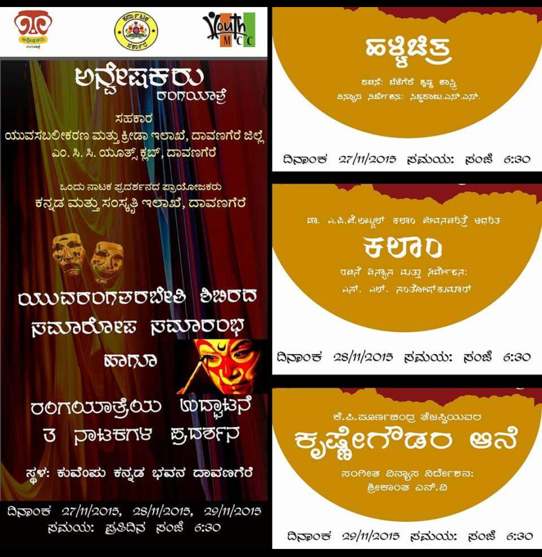 Anveshakaru Art Foundation (R.) is proud to claim that since 2015, it has created its own footprints by transforming Kannada texts into plays based on Kannada texts by pre-graduation students and performing in various districts of the state. The main objective of our Seekers Art Foundation (R.) Trust is to actively participate in youth group theater and cultural programs and make the art and culture of our country evergreen in the world.